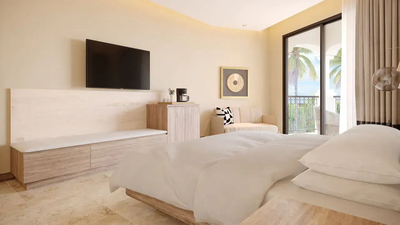 Stunning resort offering breathtaking views of shimmering Banderas Bay or lush, tropical gardens. Dark wood pieces are accented with relaxing brown and bright orange pops of color throughout each room, complementing the local region’s beauty.