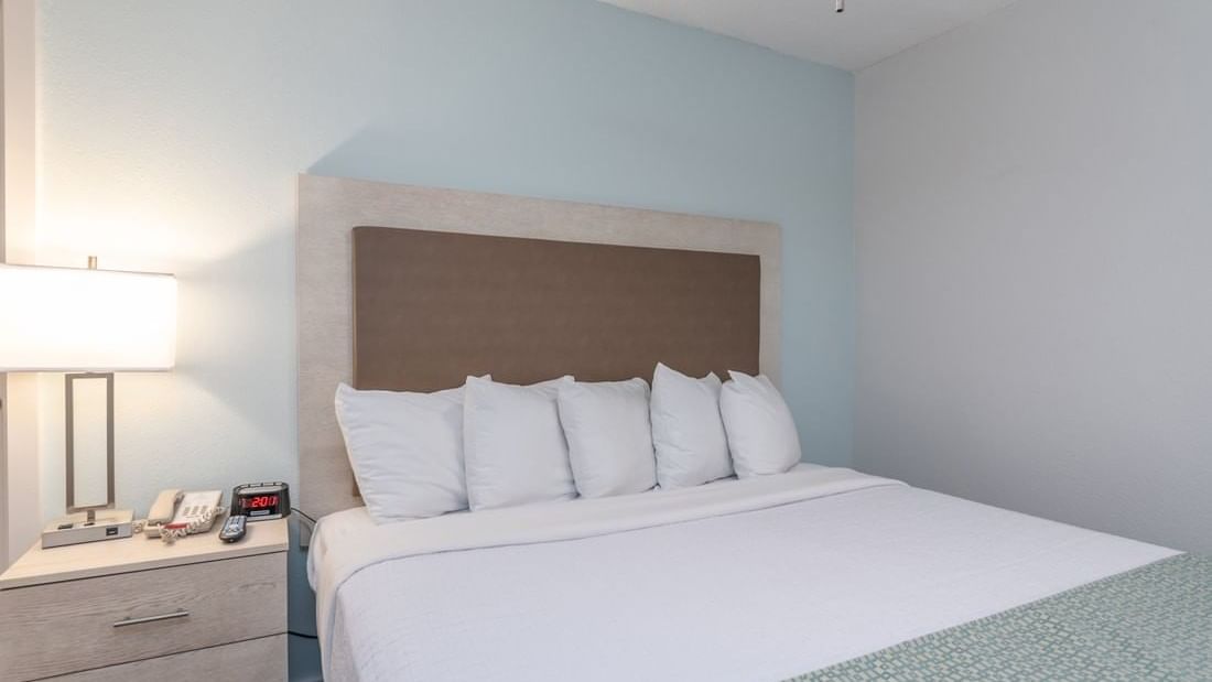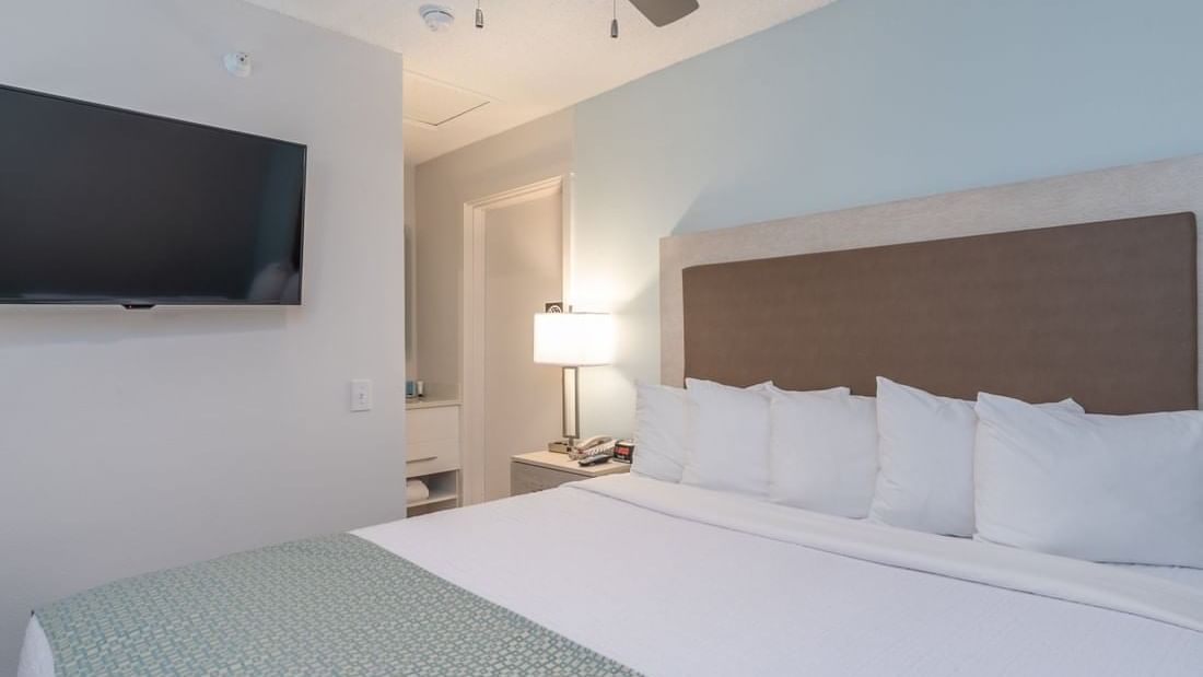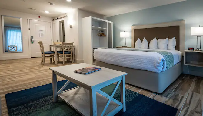 Ideally suited for solo travelers and couples, our King Suites offer one king bed, a sleeper sofa, private balcony, and a fully equipped kitchen. Enjoy all the comforts of home with the bonus of a friendly, accommodating staff at your service.