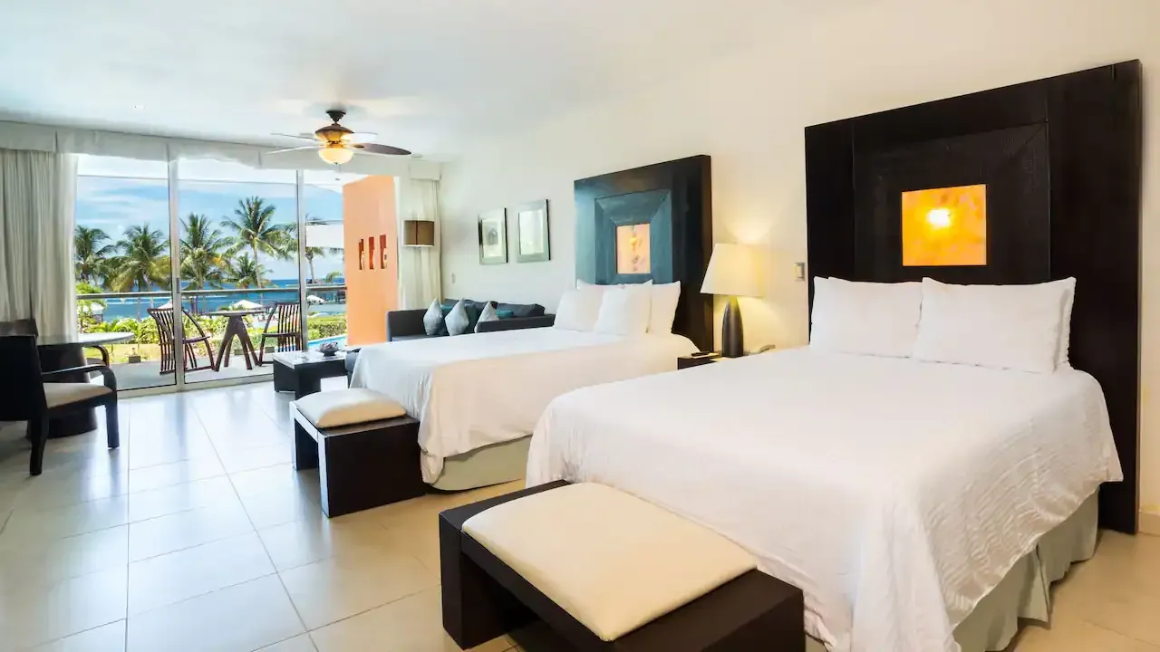 Feel the sea breeze from a private balcony complete with a hammock from this 550-square-foot suite featuring one king bed or double beds, an integrated sitting room, and a spacious bathroom with a standing shower.