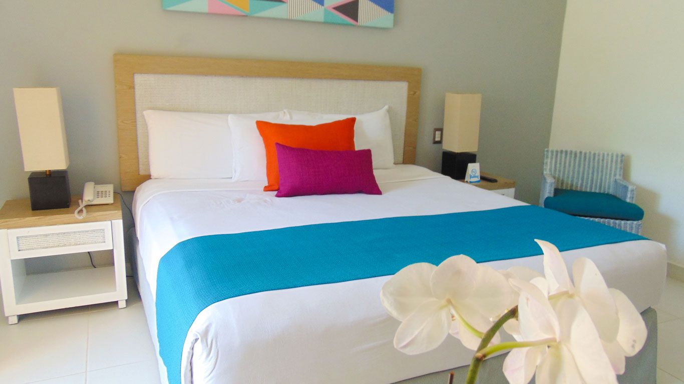 Suites with stunning views of tropical gardens and palm trees along the beach of Playa Dorada.