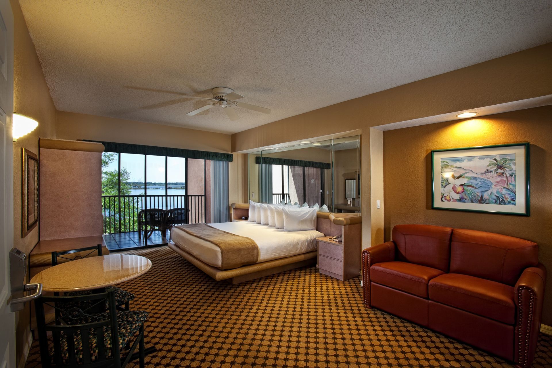 Our spacious 1-bedroom 1-bath villa can easily accommodate your party of 4. This beautiful villa gives you all the space and comfort you desire to easily entertain family and friends.
